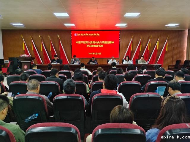 开班仪式上,党委书记黄黑平传达了领导干部深入贯彻中央八项规定精神学习教育读书班开班式精神。他强调,学院举办中层干部深入贯彻中央八项规定精神学习教育读书班,这是全面落实党的二十大精神和中央八项规定精神的重要举措,也是推动学院全面从严治党向纵深发展、营造风清气正政治生态的必然要求。黄黑平就开展好本次读书班提出三点要求:一是提高政治站位,深刻认识贯彻落实中央八项规定精神的重大意义。八项规定实施以来,党风政风为之一新,为党和国家事业发展提供了坚强保障。高校是党的意识形态工作的重要阵地,我们必须旗帜鲜明讲政治,把贯彻落实中央八项规定精神作为检验对党忠诚的“试金石”,以实际行动坚决维护党中央权威和集中统一领导。二是坚持问题导向,准确把握贯彻落实中央八项规定精神的重点任务。坚决整治形式主义、官僚主义。严格执行廉洁自律规定,绷紧纪律之弦,管好自己、管好家属、管好身边人。弘扬艰苦奋斗精神,厉行勤俭节约,建设节约型校园,不搞“形象工程”“政绩工程”,把有限的资源用在推动学院内涵发展上。三是强化责任担当,确保中央八项规定精神在学院落地生根。学院党委要切实履行全面从严治党主体责任,班子成员要落实“一岗双责”,中层干部要带头执行规定,形成一级抓一级、层层抓落实的工作格局。学院纪委要聚焦重点领域、关键环节,常态化开展监督检查,对顶风违纪行为严肃查处,持续释放“越往后越严”的强烈信号。
